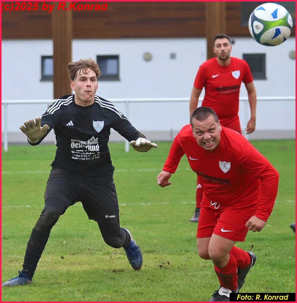 Der schönste Treffer des Tages gehörte dann wieder der FSG: Ein Freistoß von Fabio Di Blasio aus dem rechten Halbfeld segelte perfekt in den Strafraum, Philipp Schaub stieg hoch und köpfte den Ball sehenswert in den Winkel (51.). Danach gestaltete die FSG die Partie ausgeglichener, zeigte mehr Zug nach vorne. Doch Löhnberg nutzte eine Unachtsamkeit in der 62. Minute zum 5:2-Endstand.