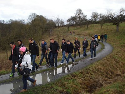 Der traditionelle Wandertag der FSG Gräveneck/Seelbach/Falkenbach am 27.12.2012 war davon geprägt, dass sich erstmals eine junge, hübsche, stimmgewaltige Frau den FSG’lern anschloss. Mona Heckelmann, die in ihrer Freizeit als Sängerin bei „WESTWIND“ auftritt und mit dem FSG-Neuzugang Rene Perina befreundet ist, hatte den Mut mitzulaufen, und fügte sich nahtlos in die Truppe ein. So starteten 19 FSG’ler –unter ihnen auch ein Überraschungsgast aus Kubach, der Ex-Trainer Gerald Götz– an der Bushaltestelle in Gräveneck gut gelaunt und bei zunächst trockenem Wetter. Durch Feld, Flur und Wald lief man nach Fürfurt in die „Lahntalschänke“. In der urigen Gaststätte von Willi Schmidt wärmte man sich auf und freute sich, dass der sympathische Bootsverleiher der gesamten Wandertruppe einen Schnaps spendierte.