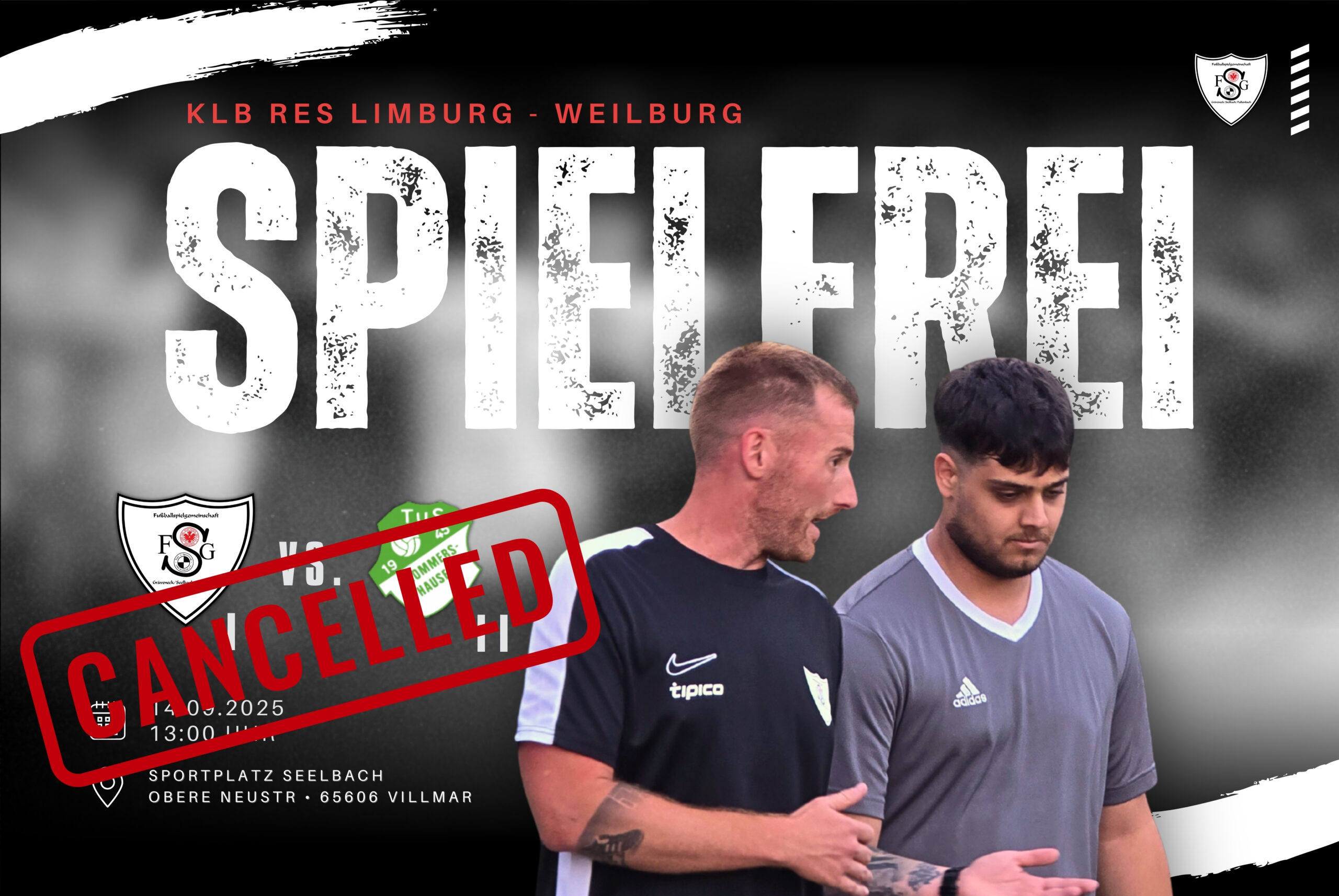 Die Partie unserer FSG II gegen TuS Drommershausen II muss leider abgesagt werden. Verletzungen, Urlaube und eine Spieler-Hochzeit reduzieren den Kader massiv; zusätzlich liegen eine Rote sowie eine Gelb-Rote Sperre aus dem letzten Spieltag vor. Da es sich in der Reserve-Runde um verbandsorganisierte (freundschaftsähnliche) Spiele handelt, dürfen gesperrte Spieler dort nicht aushelfen – selbst das Norweger-Modell ist daher nicht meldefähig.